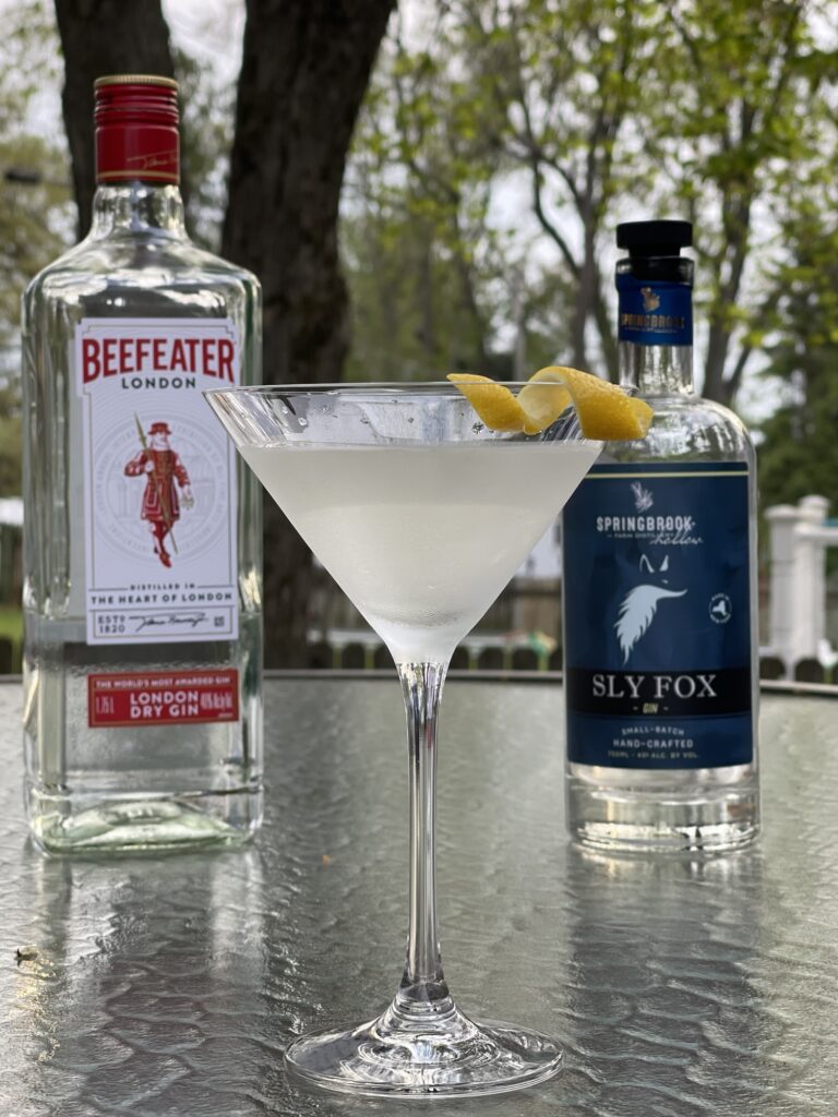A London Dry (like Beafeater or Tanqueray) makes a very different martini from gins like Caorunn (Scotland), Drumshanbo (Ireland), Roku (Japan), or Tommyrotter (United States). I’m partial to Beafeater, both for the nostalgia, and because it’s a decent gin at an affordable price. However, a few years ago, I read a piece by Caroline Hatchett that advocated for splitting gin in a drink. Given the proliferation of local gins, that resonated with me, and I’ve been playing around with it ever since. I’ve found that I enjoy a mix of a London Dry and an American gin from New York. Beafeater (or Tanqueray) mixes very well with Tommyrotter, Blue Coat (yes I know it’s not from New York), or Sly Fox. I generally use a bit more of the American gin: maybe 3:2 or 4:3.