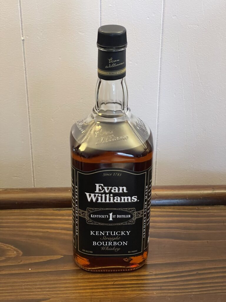 So I’m trying to save some $$ by seeing how much I can cheap out on the bourbon before it’s not worth drinking. I’ve been using Old Grand Dad Bottled in Bond bourbon, and it’s a great value at $23.99 for 1 L. This time I tried Evan Williams “Black Label” bourbon, available at my regular liquor store for $26.99 for 1.75 L.