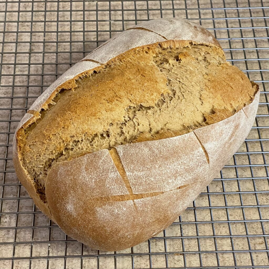 Unfortunately, I made one of my slashes slightly too deep, and the bread burst more than I would have liked.